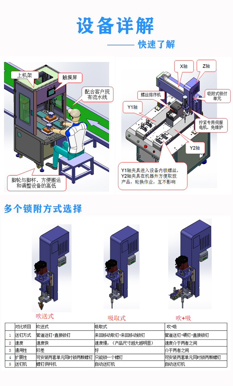 自動送釘:人工只需把螺釘倒入料斗,送釘機構會自動供釘